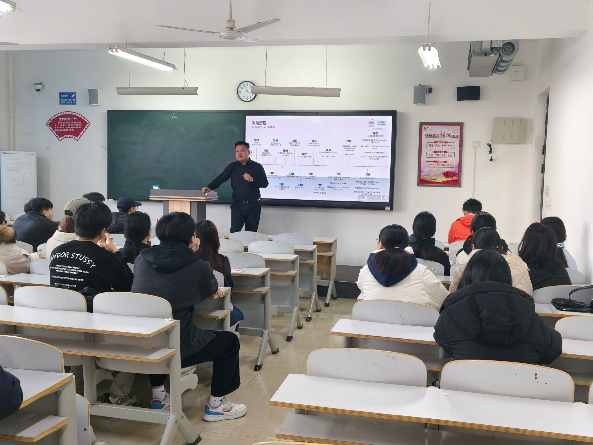 2025年11月24日,浙江吉利控股集团长兴基地校企合作事业部负责人李经理一行,应邀到访m88,举办智能制造专场招聘宣讲会,现场发布冲压、焊装、物流、总装等关键生产环节的技术岗位招聘计划。此次活动是m88深化产教融合机制,推进应用型人才培养模式创新的具体举措,旨在通过校企直接对接,实现人才培养与产业需求的精准匹配。