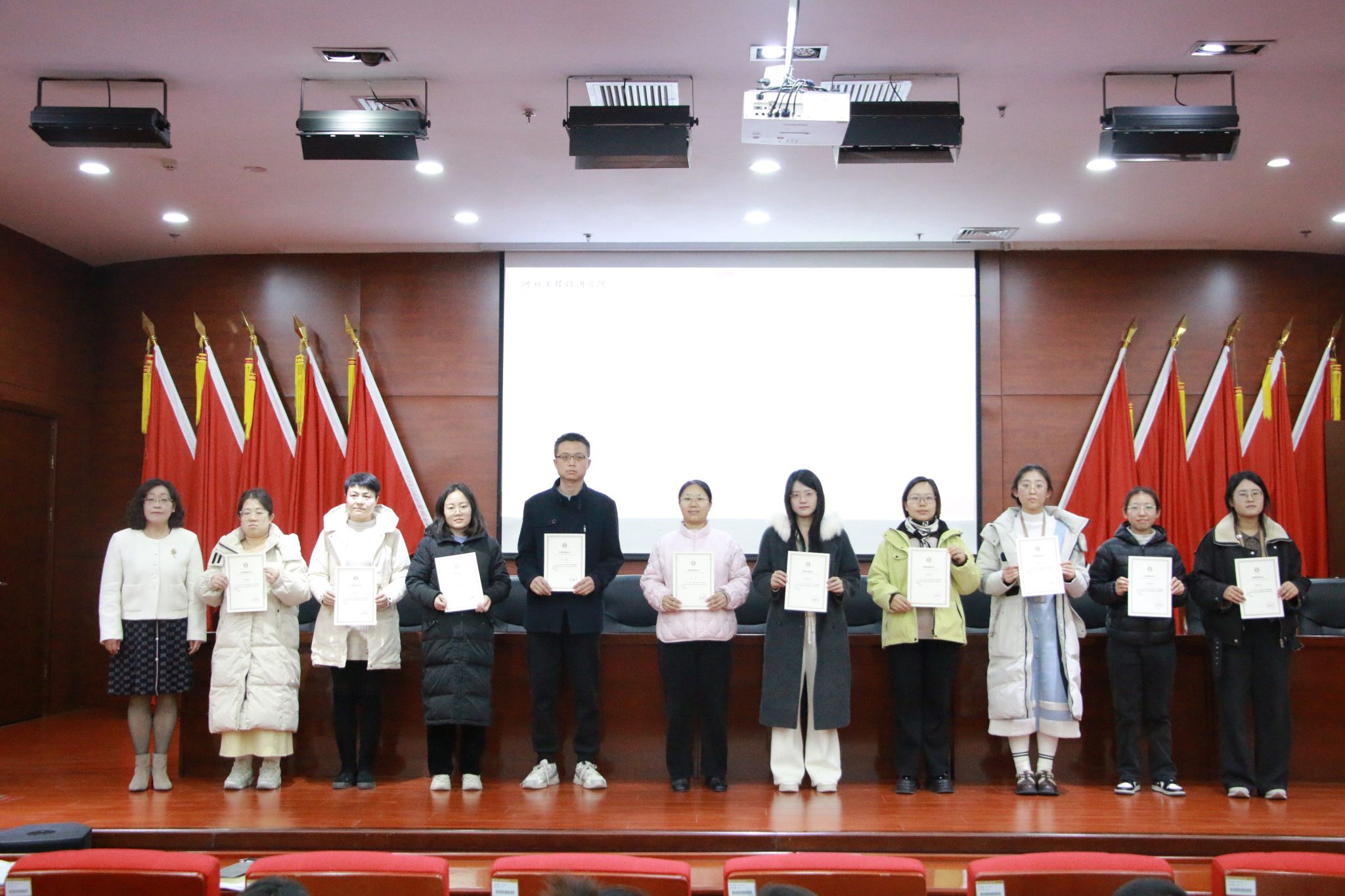 随后,由王院长、尹院长依次为新晋教师颁发证书,正式认可他们的教学资质与专业能力。这张证书既是对他们专业素养的肯定,更是对其未来投身教育事业的殷切期许,标志着他们将以“持证上岗”的全新姿态助力学院教学发展。