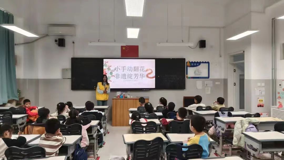 m88心理健康协会与青年志愿者协会于2025年11月14日在汇宁小学联合开展“小手动翻花,非遗绽芳华”活动。