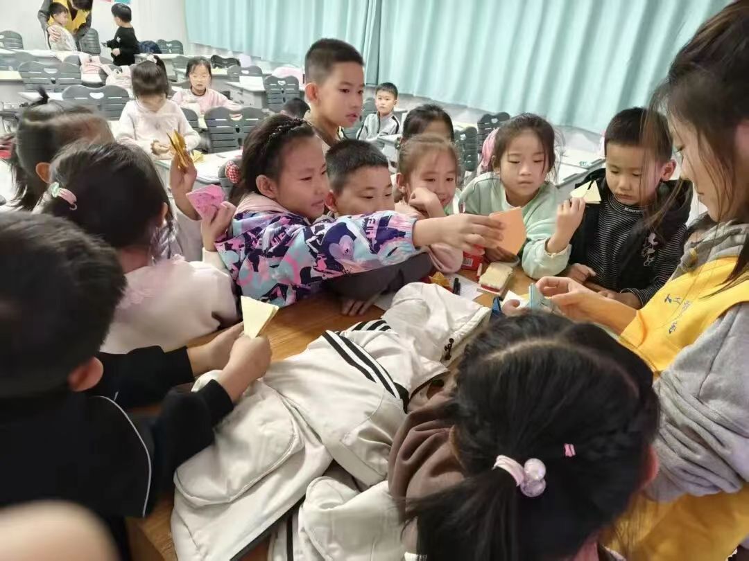 活动现场,志愿者们通过PPT讲述翻花的历史——从古代宫廷的益智玩具到民间的民俗珍品,这项技艺承载着几代人的童年记忆。随后,志愿者分步演示翻花的折叠、翻转技巧,详细拆解翻花的制作要领。孩子们聚精会神地聆听讲解,迫不及待地动手尝试,从最初的手忙脚乱到逐渐熟练掌握,指尖翻飞间,一张张普通的卡纸变成了变幻无穷的翻花作品。当看到自己的作品能变换出多种造型时,孩子们兴奋地相互展示,现场充满了欢声笑语,传统文化的魅力在互动中深深感染着每一位参与者。